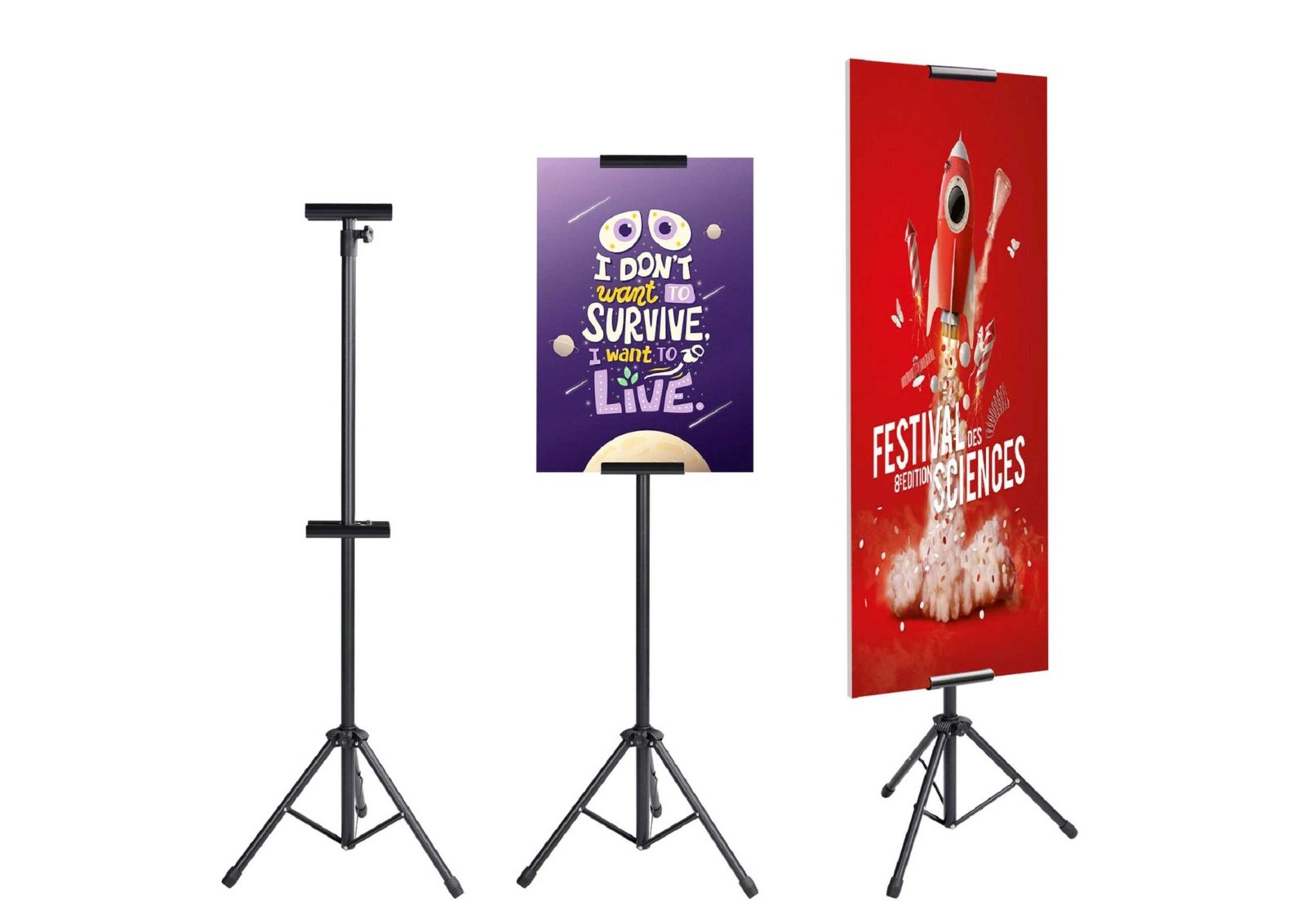 - Rangka Tripod: Kaki tiga yang kokoh dari besi atau aluminium, ringan, mudah dilipat, dan stabil untuk menopang poster.