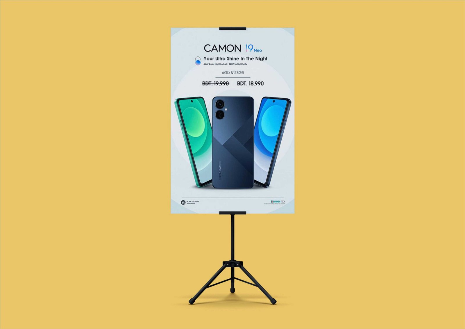 Tripod poster adalah media promosi praktis berbentuk poster yang berdiri di atas kaki tiga (tripod), sering dipakai untuk menampilkan informasi produk, diskon, atau logo bisnis di berbagai acara (pameran, toko, seminar).